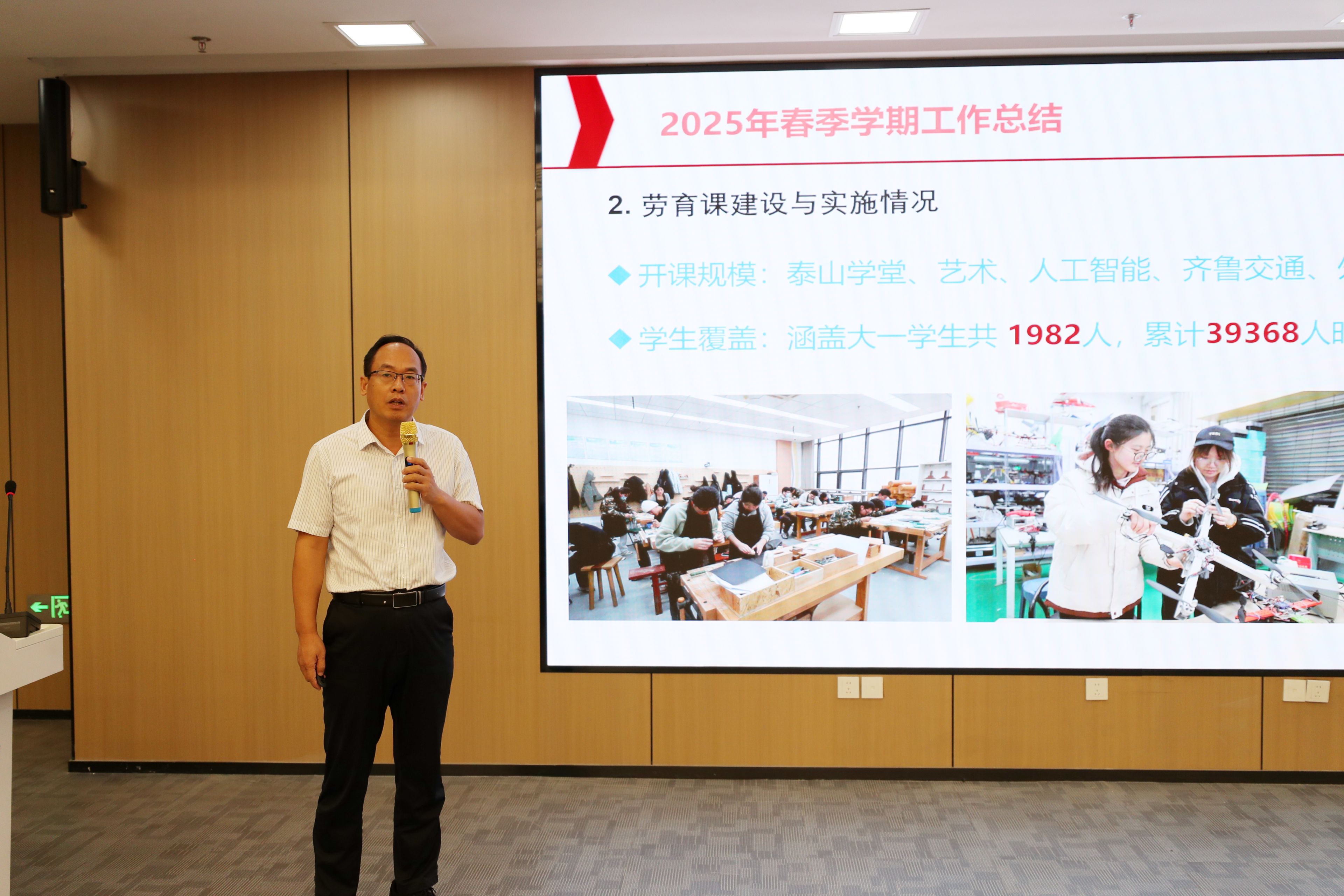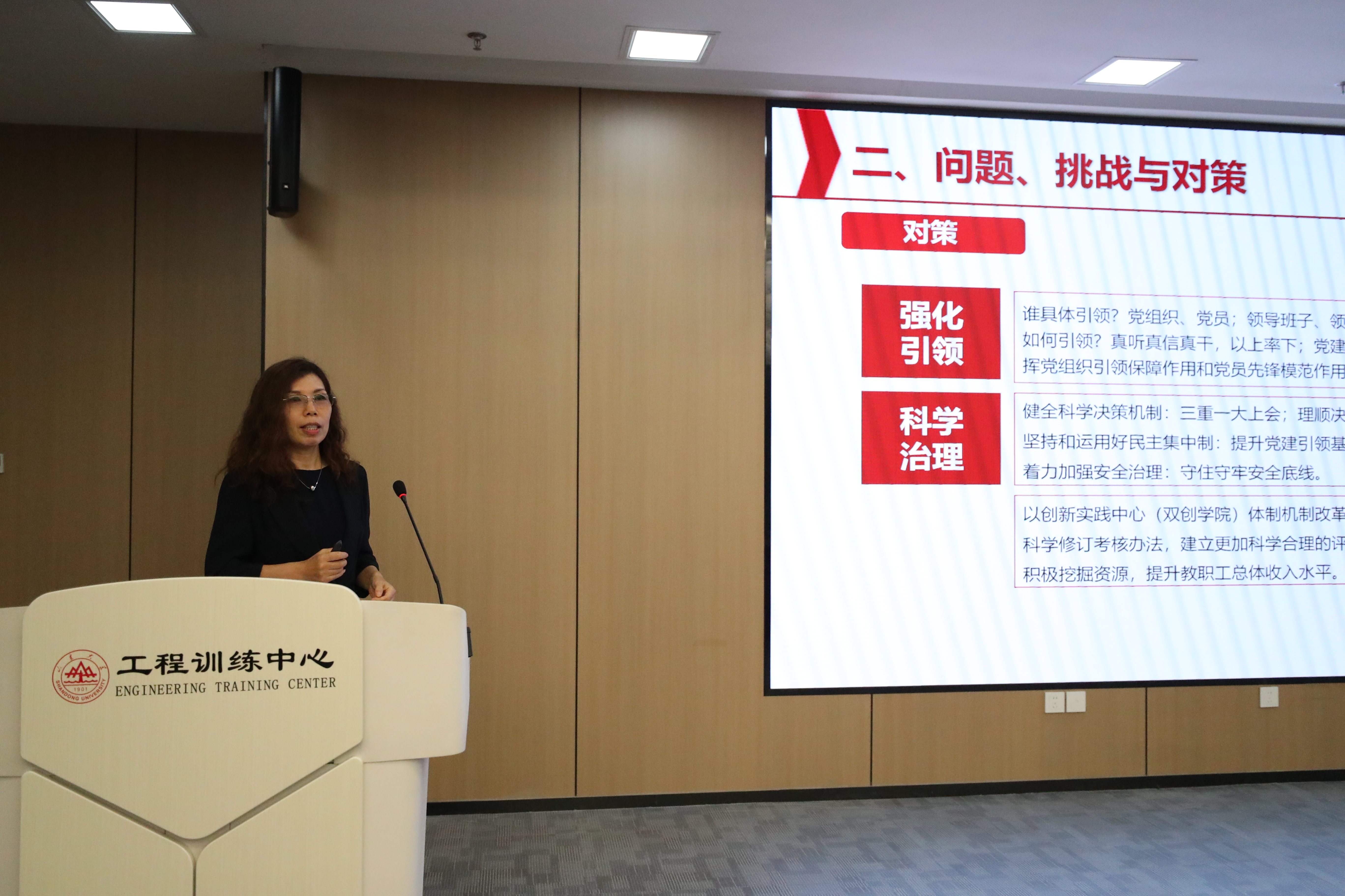 孙玉玲传达了山东大学2025年秋季学期工作会议精神,以“党建引领治理提升改革开启建设新程”为主题,从当前形势与任务、问题挑战与对策等方面进行了部署动员。她强调,中心要以改革促发展,紧紧围绕《山东大学全面图强三年行动方案(2025—2027年)》,结合中心实际工作,通过党建引领和科学治理,推动中心各项发展任务、建设目标的落实落地。她围绕中心新学期的重点工作提出了三点要求,一是要锚定方向,抢抓机遇;二是要真抓实干,全面图强;三是要主动作为,提质增效。她希望全体教职工心往一处想、劲往一处使、智往一处谋,打造工训新的生产力、新的增长点,为学校加快建设担当中华民族复兴大任的世界一流大学交出工训人的优异答卷。