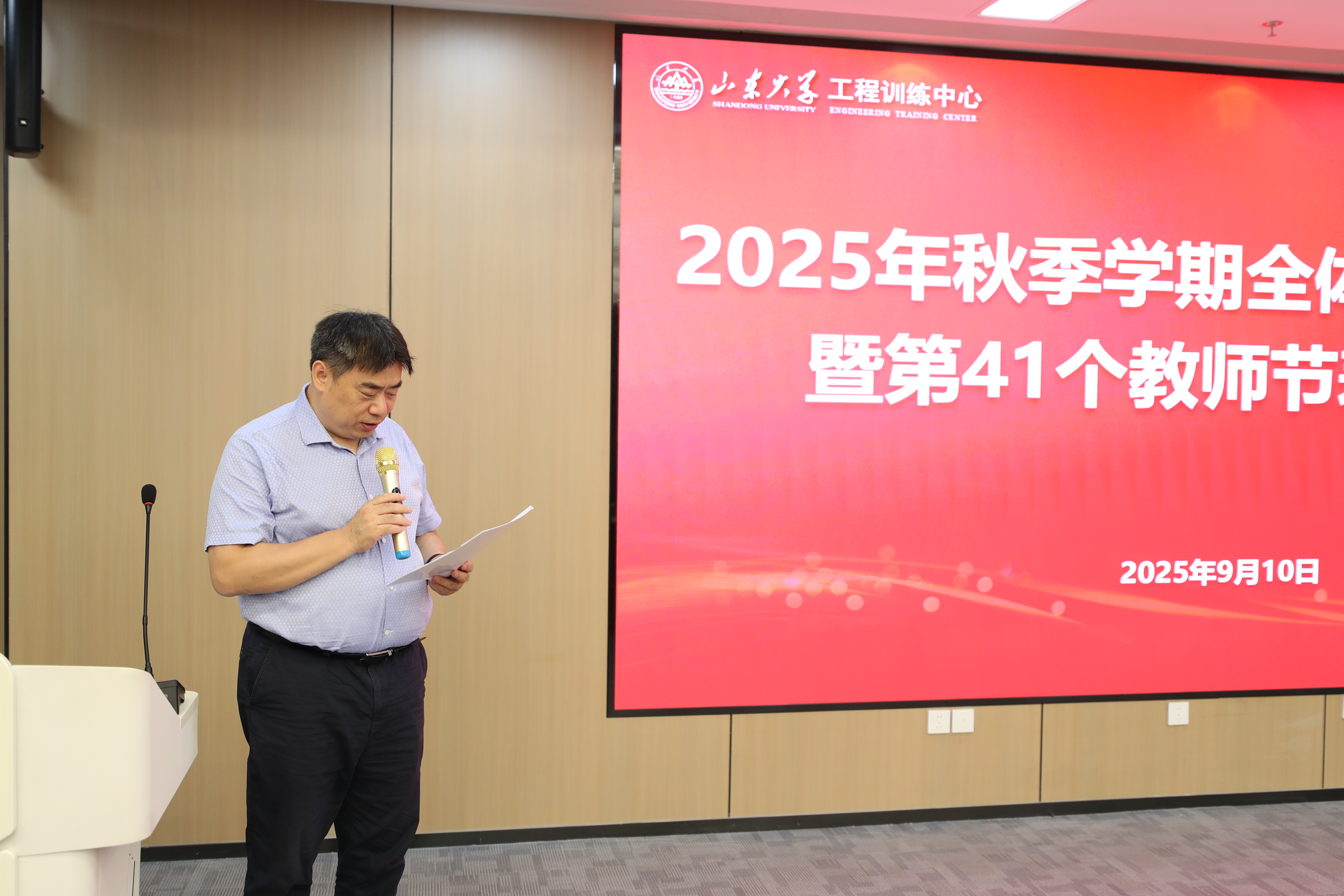 在第41个教师节到来之际,工程训练中心于9月10日上午隆重举行教师节表彰大会,对优秀教师和先进典型进行了表彰,并启动了第二届“最美工匠”“工匠新秀”选育活动,激励全体教职工在教育强国建设中担当作为。会议由中心主任宋锐主持,中心全体教职工参加大会。