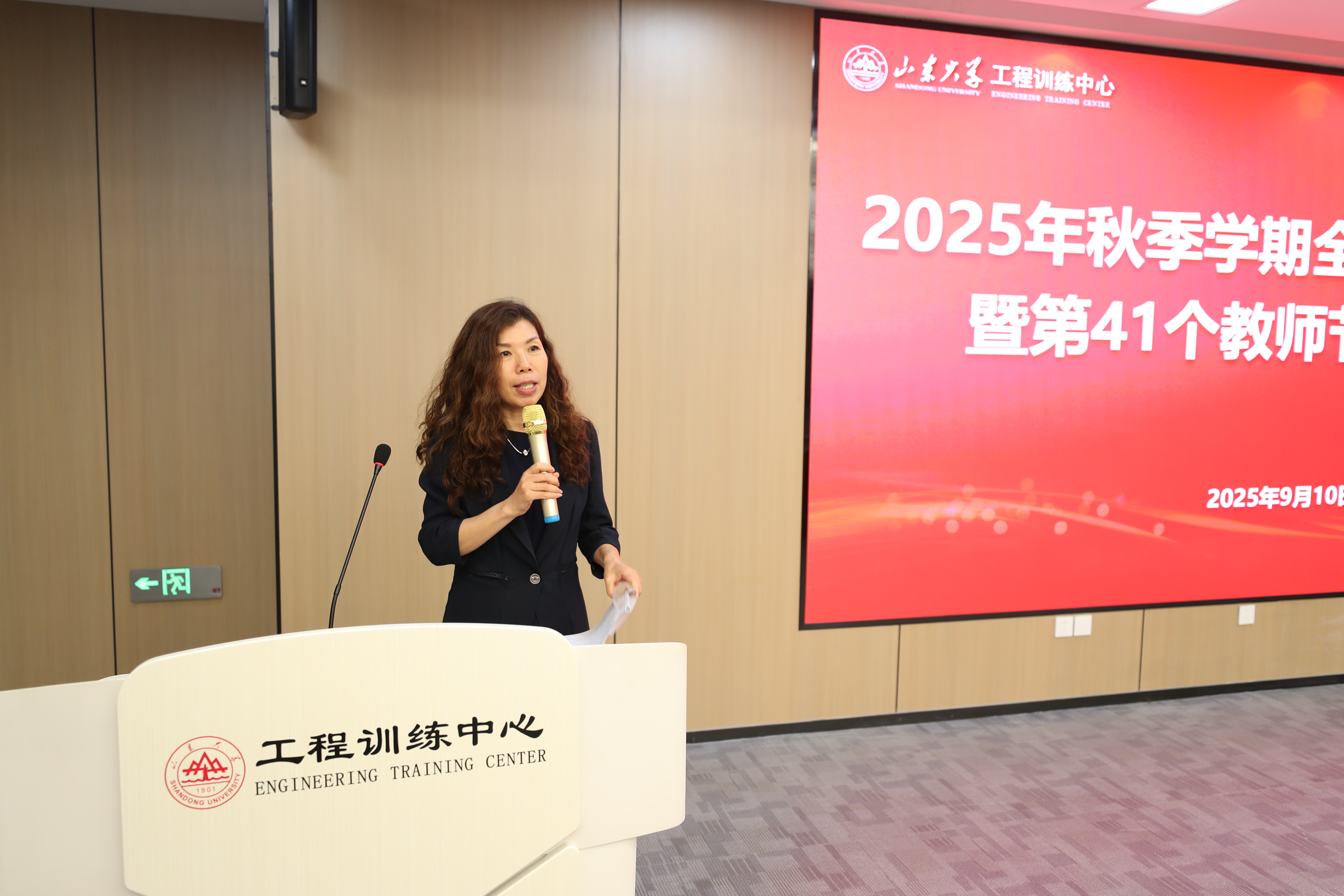 孙玉玲代表中心党总支向受表彰人员、一线教师、管理服务人员表达了节日问候。她指出,教师是立教之本、兴教之源,党的十八大以来,中共中央、国务院先后出台《关于全面深化新时代教师队伍建设改革的意见》等重要文件,明确了教师队伍建设的战略地位和目标,为大力弘扬教育家精神、打造支撑教育强国的高素质专业化教师队伍作出了顶层设计和系统部署。中心作为全校实践育人、双创教育、劳动教育、产教融合的重要单位,始终高度重视教师队伍建设,先后开展了系列教师能力提升培训、师德师风专题培训等活动,启动了两届“最美工匠”“工匠新秀”选育活动。她希望全体教职工能够持续传承和弘扬教育家精神、科学家精神和工匠精神,不断探索符合学科特点、时代要求和拔尖学生成长规律的教育教学新模式,肩负起“躬耕教坛,强国有我”的时代使命,为学生成长成才夯基固本。
