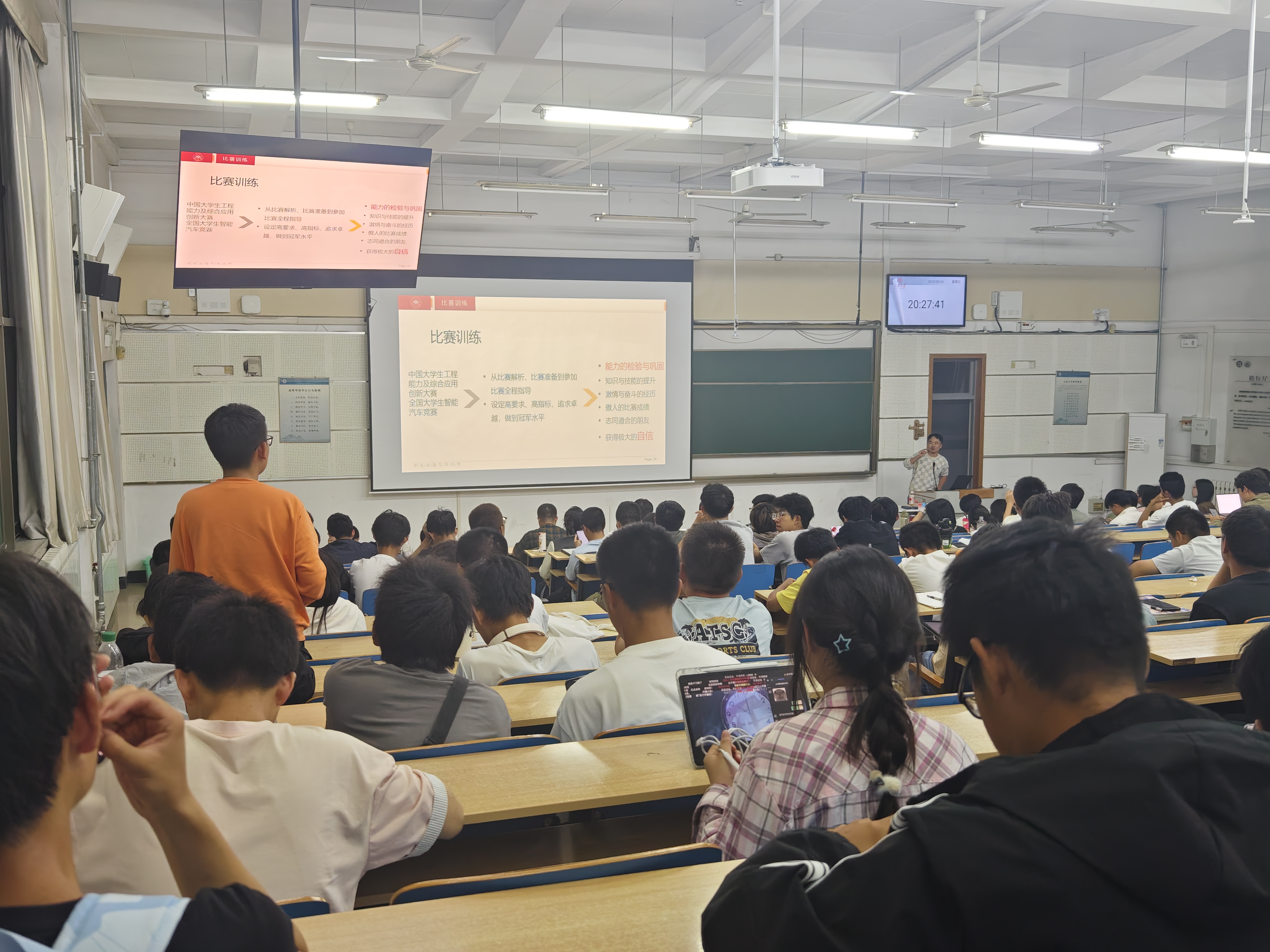 为帮助新成员顺利入门,工坊在学期初组织了纳新宣讲与安全培训,并邀请了在全国大学生智能汽车竞赛冠军黄慧波、中国工程实践与创新能力大赛一等奖获得者师琪学长分享参赛经验与成长心得。180余名来自不同专业的同学加入本期训练,在老师和学长学姐的全程指导下,新学员们逐步学会资料检索、问题分解与模块调试等方法,实现了从“跟随教程”到“自主探究”的学习模式转变。