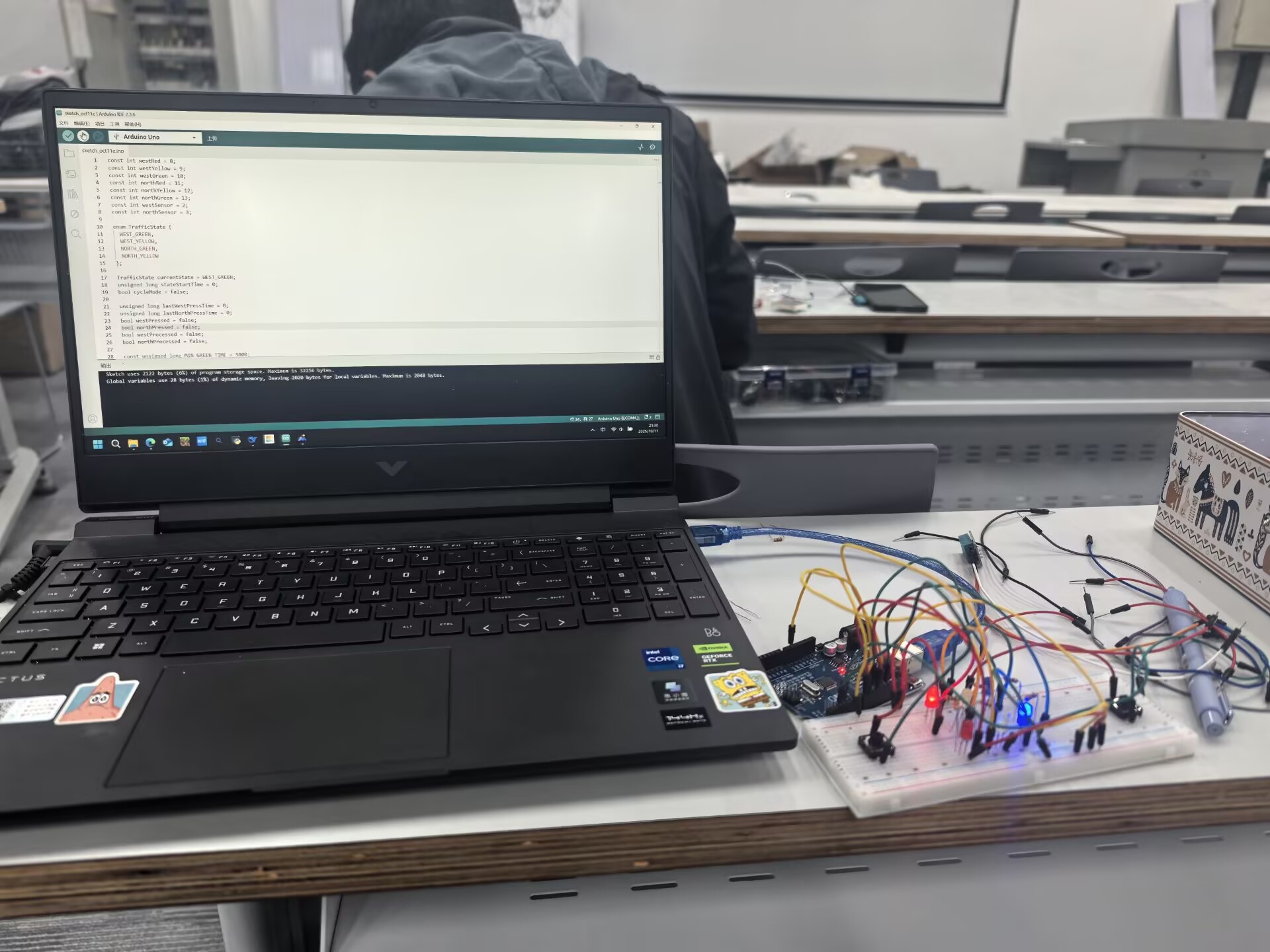 对新学员而言,实践训练不仅是技术入门,更是学习模式的转变。从依赖教程模仿到主动检索探究,从盲目试错到有序排查,每一步推进都离不开学生的自主思考与持续尝试。控制学院25级刘佩哲同学分享道:“一开始跟着教程做也会频繁遇到问题,很多时候只能自己去查资料、对着代码和电路一点点排查。虽然过程辛苦,但当看到自己组装的智能小车真正跑起来时,那种成就感让我对后续学习充满信心。”