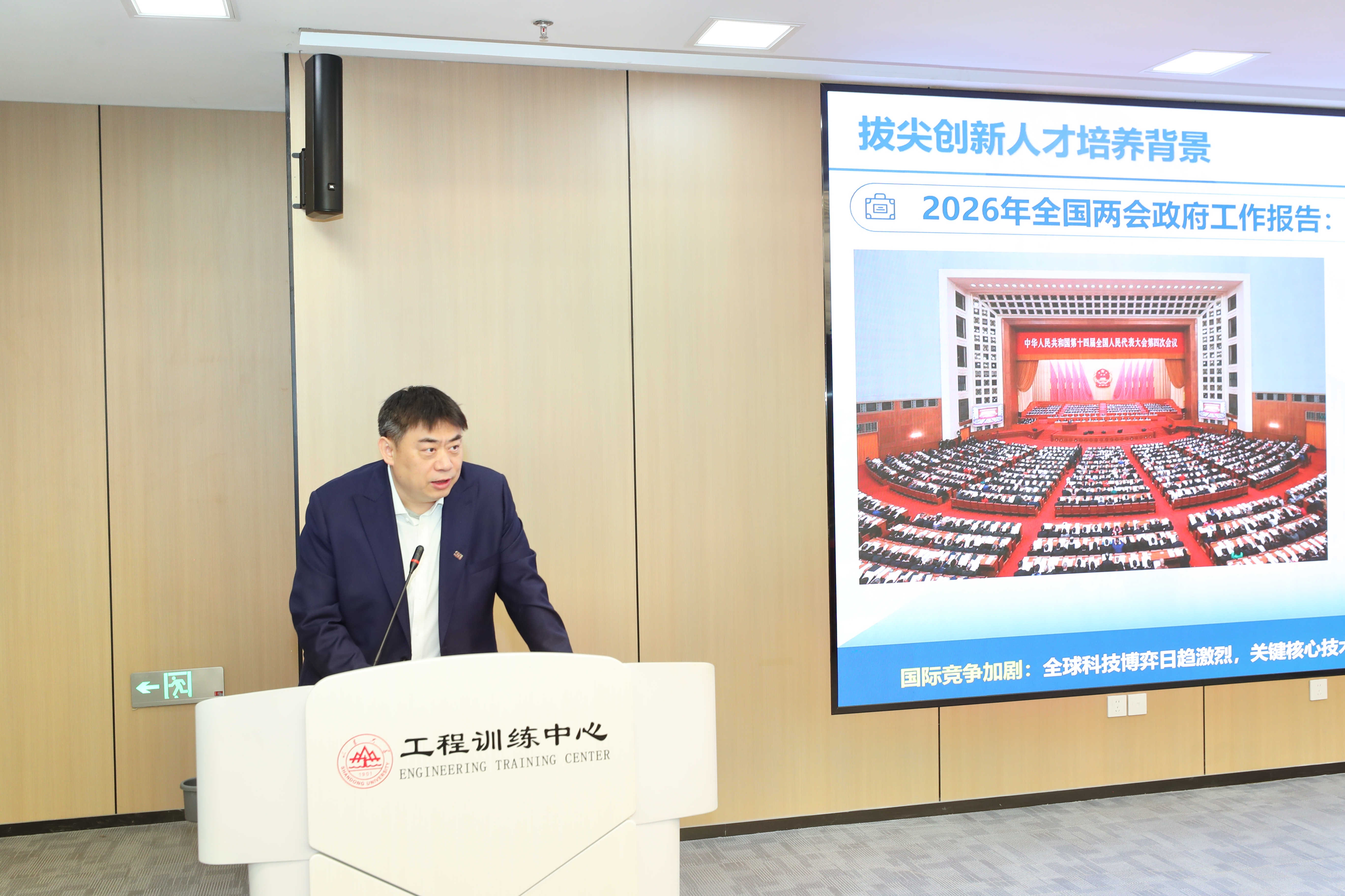 宋锐以“工程训练向创新实践转型启航之年”为题作报告,他总结了中心过去一年重点工作完成情况,剖析了制约发展的瓶颈问题。紧扣国家拔尖创新人才培养战略,结合两会精神与国际科技竞争背景,分析了向创新实践中心转型发展的必要性和紧迫性。明确新学期六大重点任务,聚焦实践教学质量提升、实验室设备更新、新型创新创业体系构建、有组织科研能力强化、校政企共建产教融合生态打造及推动中心更名与龙山校区规划,提出以“三融计划”培育跨学科创新人才,打造实践育人、创新孵化等特色平台,推动工程训练向创新实践全面转型。