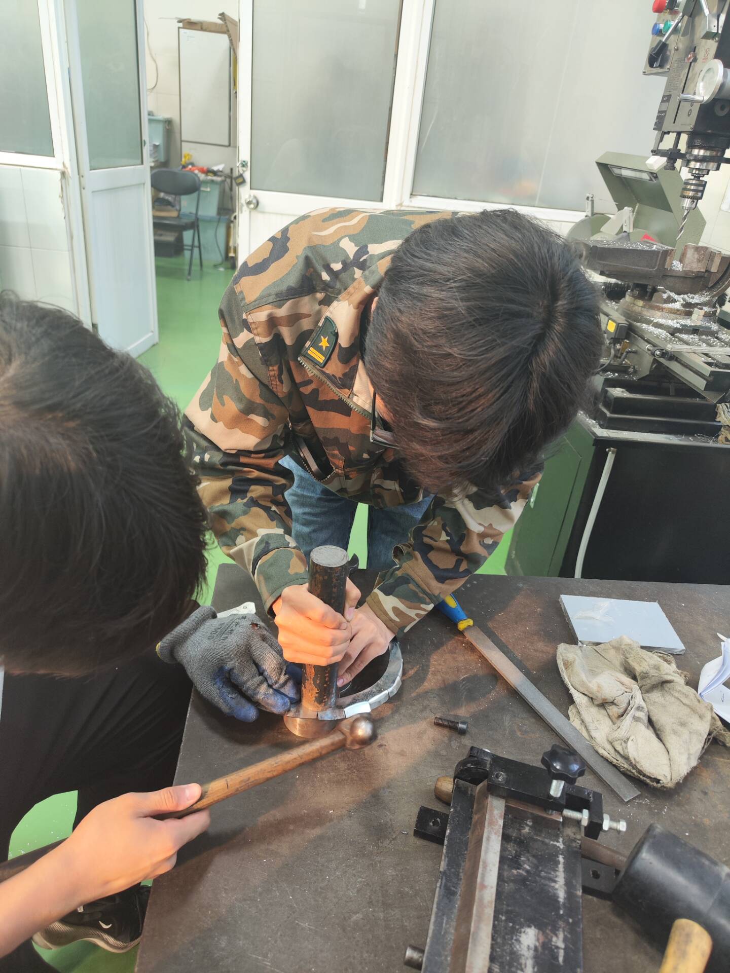 在项目开展的前十周学习阶段,我们主要是在工训中心相关车间学习各种加工工艺。每接触一种工艺,我们都会思考:这个工艺可以应用于我们炉子的那个具体部件?有什么样的优缺点?随着项目的推进,我们逐步深入学习并将所学理论知识应用于实际设计中。例如,我们运用热力学原理优化燃烧室结构,引入二次进风系统实现燃料充分燃烧;借助流体力学知识设计空气动力学结构,提升燃烧效率与减少烟气;同时,我们在设计制作过程中也兼顾了炉具的极致轻量化与长期使用可靠性。刘新功老师和田勇老师在项目中给予了我们全方位的指导,从整体方案设计、加工工序制定,到每一台设备的使用方法、每一件零件的装夹技巧,两位老师都为我们提供了坚实的理论基础和技术支撑。