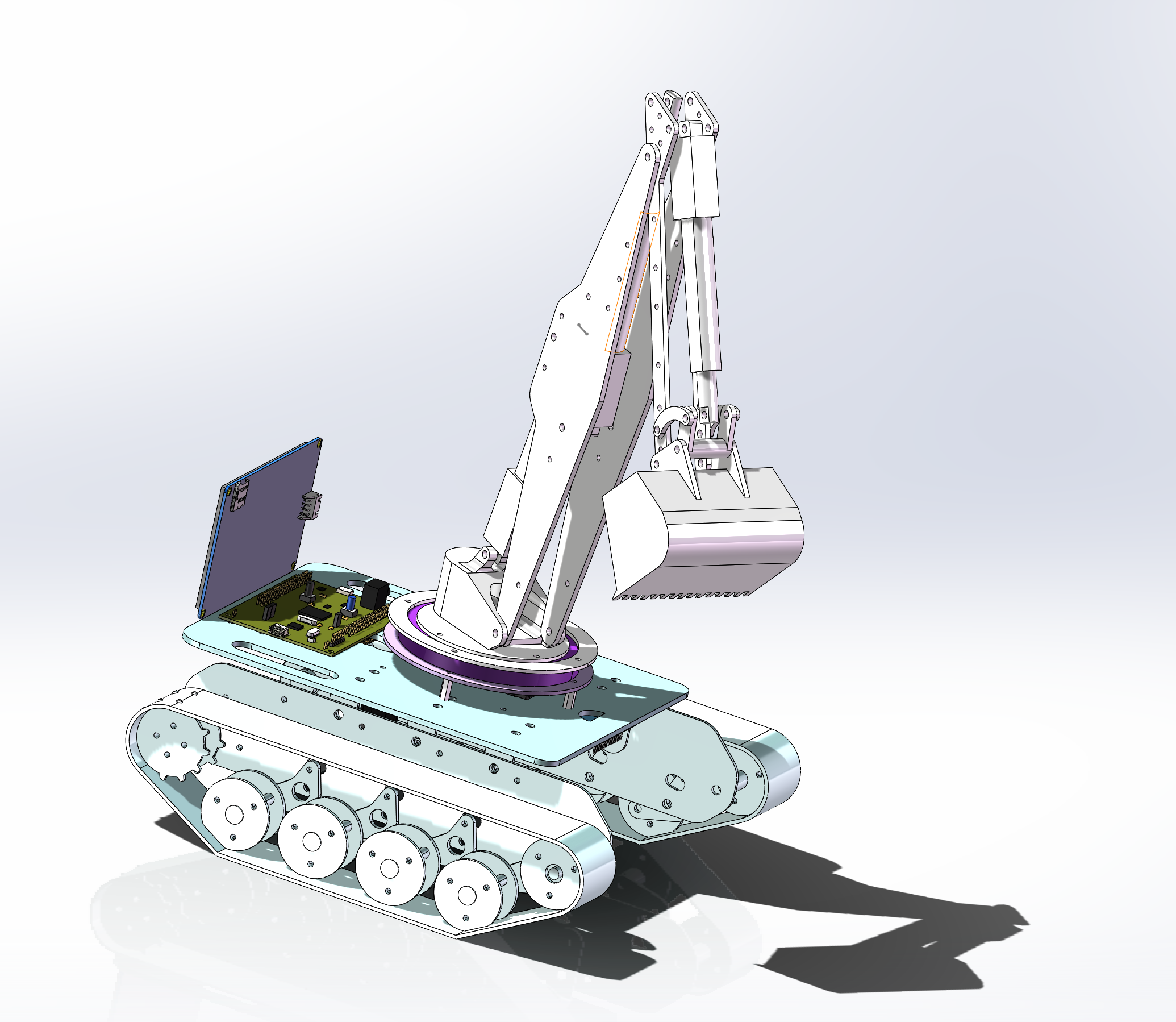 在机械设计阶段,我们利用SolidWorks等三维设计软件,对挖掘机的机械结构进行了仔细的建模和优化设计,考虑到挖掘机需要做到灵活和稳定,我们进行了模块化设计,将挖掘机分为底盘、臂架、铲斗和控制系统等模块。