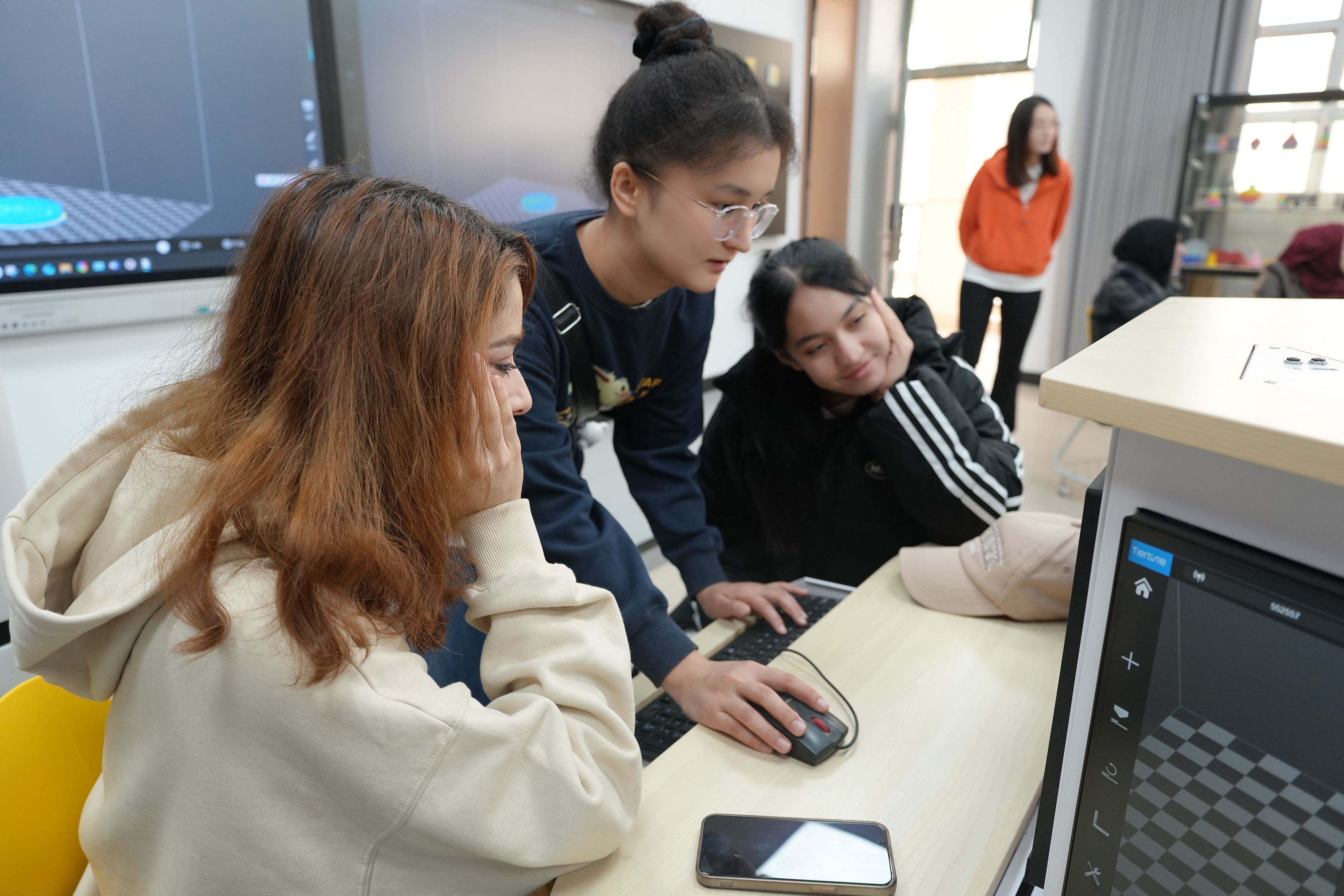 国际学生先后参观了中心3D打印工作坊、智能制造产线、电子产线,面对自动化智能化设备和流畅的生产流程,学生们赞叹不已。随后,在指导教师的细致讲解下,学生们分组动手,亲身体验了从数字模型到实体产品的3D打印过程。在互动交流环节,学生们围绕智能装备的技术原理、应用前景等问题与教师展开热烈探讨,充分展现了对智能科技发展的浓厚兴趣。