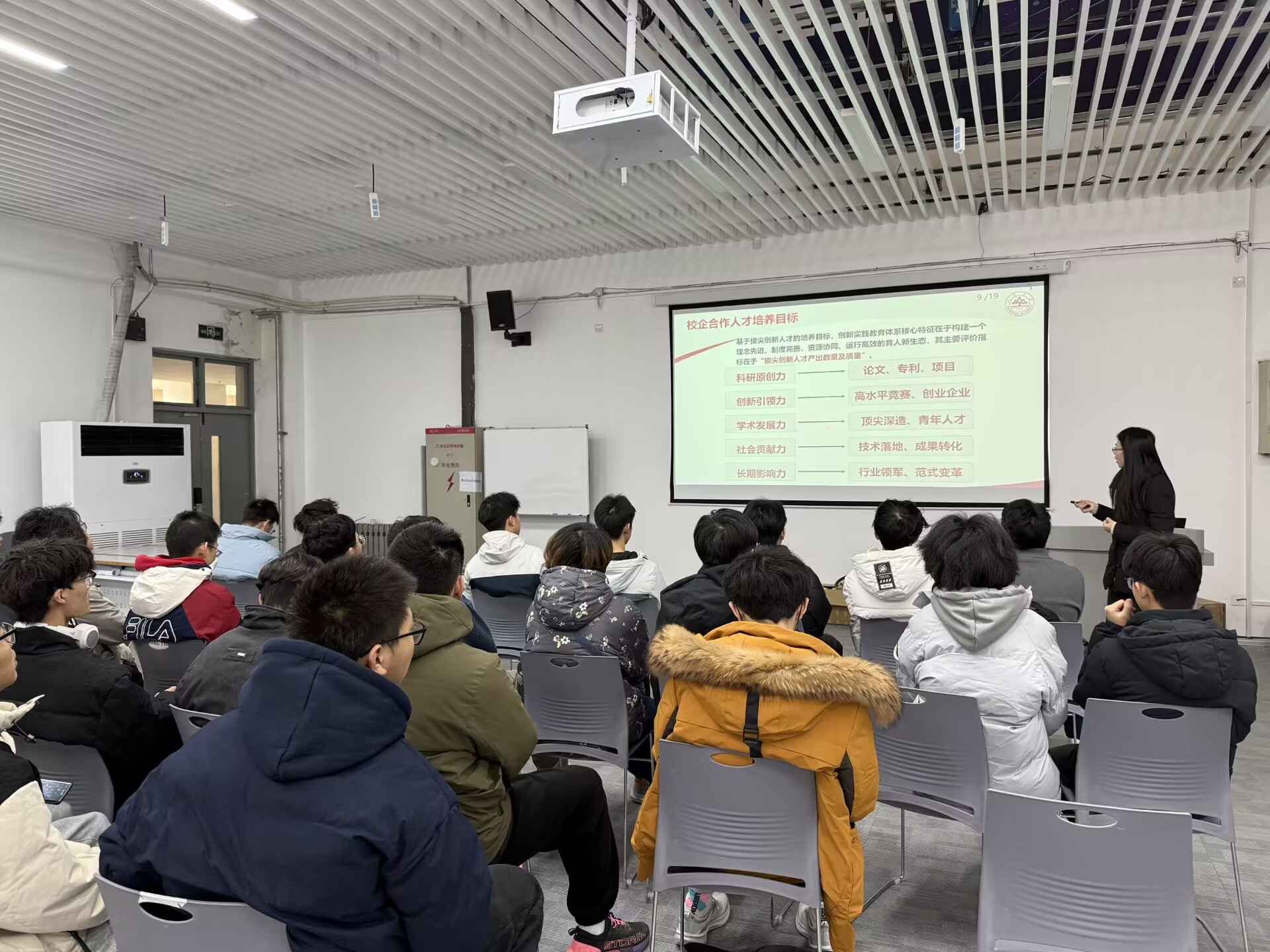 12月19日,“渡龙创新工坊初级训练总结交流会”在工程训练中心301举行。柴锦老师介绍了工程训练中心“竞赛驱动、层次递进、项目贯通”的培养体系,她指出,工坊的培养不局限于单一竞赛,而是通过系统的项目训练、开放的平台支持和持续的校内外导师指导,为学生提供从基础夯实到创新突破的完整成长路径,助力大家逐步构建工程素养与系统化思维。管吉冬老师结合初级训练典型案例,讲解了问题拆解、模块化设计与系统调试等方法,他强调,工坊学习的价值不仅在于完成单个作品,更在于掌握可迁移的工程思维与实验方法——包括严谨的逻辑推演能力和自主搭建测试系统的实践能力,这些都是未来投身科研、参与竞赛或走向产业创新的必备基础。